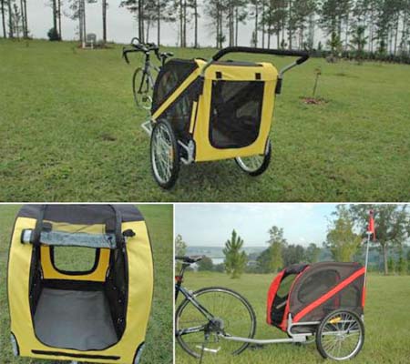 Agora o seu animal de estimação já pode sair para passear com você e ainda de “táxi particular” que possui duas portas (uma na frente e outra atrás), 4 janelas retângulares em cada lado, caso possua mais de um animal, você pode unir múltiplas bicicletas com suportes extras , para guardar pode ser dorado, as portas possuem zipper. Preço: USD$329