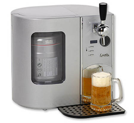 O MBD5L Mini Pub Mini Beer Keg Dispenser (dispensador de cerveja) da Avanti é compacto, projetado para armazenar um barril padrão (americano) de 5 litros. Vem com adaptadores (AC e DC), podendo ser usado em qualquer lugar. Display digital para ficar fácil ajustar a temperatura. (°C/°F) . Preço $299.
