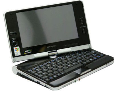 O E8 subnotebook da Kojinsha que será lançado até o final do mês, roda Windows XP, vem com processador AMD Goede LX800, 512MB de memória, tela sensível ao toque (1024×600), caixa de som embutida, slot para cartão de memória