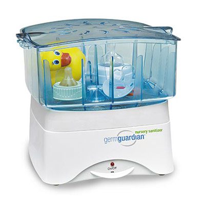 O Germ Guardian Nursery Sanitizer ajuda a manter os utensílios do bebê sempre limpos, sem utilizar produtos químicos, ao invés usa ar quente para matar os germes em aproximadamente meia hora. Ideal para limpar chupetas, mamadeiras, bicos, entre outros. Preço: USD$49,99.