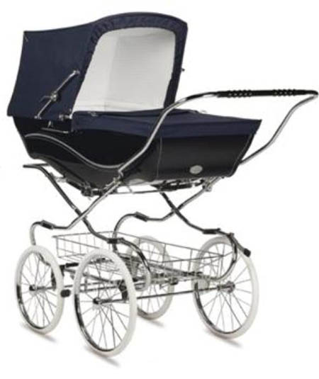 O carrinho de bebê estilo clássico, construído manualmente da empresa Kensington Pram possui corpo e rodas destacáveis, chassis dobrável. Preço: USD$3.295.