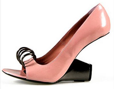 O primeiro sapato cujo salto alto está localizado na parte da frente é parte da coleção 2008 do designer americano Marc Jacobs. O salto alto de 10.16cm fica horizontalmente na parte da frente do sapato, fazendo com que o centro de gravidade fique em algum lugar sob o arco do pé, forçando o corpo inteiro a inclinar-se. O esforço de permanecer ereto sob esse tipo de salto será o equivalente a uma classe de Pilates avançada. Preço: £270 / ~USD$540 (par simples) e £330/~USD$660 (par mais elaborado com cristais Swarovski).