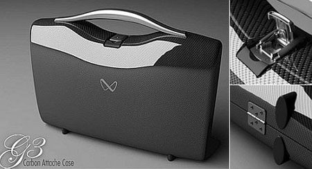 A maleta G3 Carbon Fiber com design de Nikola Knezevic, é capaz de resistir a impactos mais fortes e pressões, a alça possui acabamento de alumínio (nas cores branco ou preto), apesar de ser resistente a impactos e presssões a maleta é leve e pode ser customizada de acordo com as necessidades do cliente. Preço: ~USD$3.600.