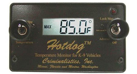 O monitor de temperatura Hotdog assegura que seu cachorro não cozinhe dentro do carro, sempre que o mercúrio passa de uma certa temperatura pré-regulada, a unidade automaticamente abaixa um par de janelas, luzes começam a piscar e a buzina a tocar chamando a atenção do proprietário do veículo e do animal. Preço: USD$366,45.