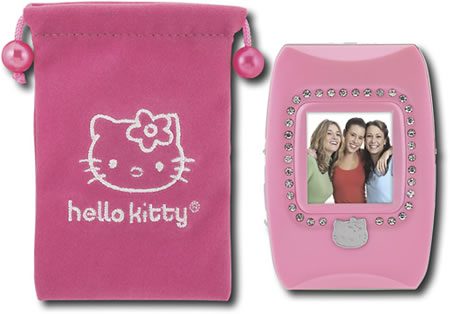 O MP3 player + porta retrato digital da Hello Kitty, possui display LCD de 1.5 polegadas, suporta formatos de arquivos MP3, WMA, WAV e AVI, vem com 64MB de memória interna que pode ser expansível via cartão SD/MMC. Preço: USD$32.99
