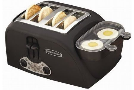 A torradeira acima, Back to Basic Egg ‘N Muffin 4-Slice Toaster/2 Egg Cooker, tem capacidade para torrar 4 fatias de muffin e cozinhar 2 ovos simultaneamente em apenas 4 minutos. Preço:USD$59,99