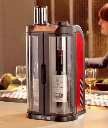 O Sowine da EuroCave conserva garrafa de vinho na temperatura perfeita pelo período de até dez dias, vem com dois compartimentos separados de controle de temperatura, a unidade hermética de armazenamento permite adequar às temperaturas do vinha às necessidades do cliente e ainda permite armazenar ao mesmo tempo uma garrafa de vinho tinto e uma garrafa de vinho branco. Preço: USD$395.