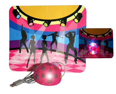 O USB mouse disco e mousepad transformam sua escrivaninha em uma boate, no mouse há um disco ball que ilumina seu dia além de ter a funcionalidade deum mouse normal. Preço: USD$19,99.