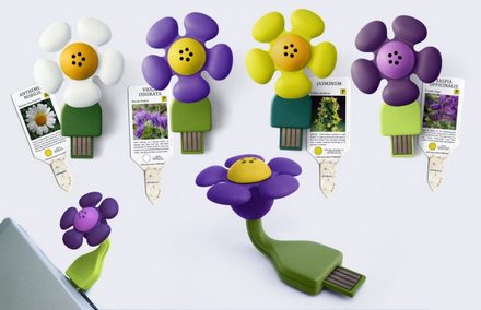 No formato de flores, conecta-se no porto USB do computador, feitos com material plástico, óleo disponível em dois tipos diferentes de fragrância para perfumar o ambiente.