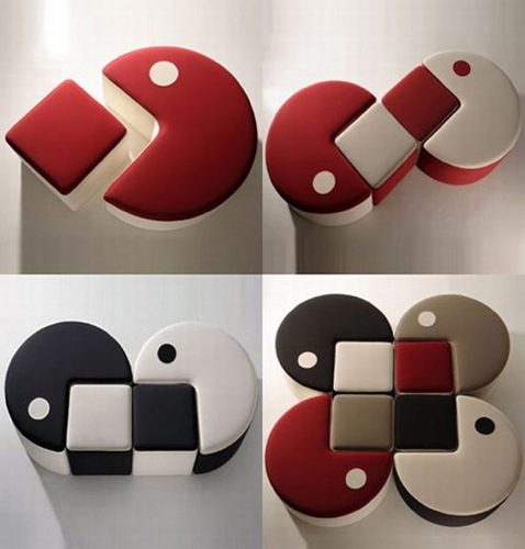 O Poufman, com design da empresa italiana QAYOT, lembra e muito com o bonequinho do jogo Pac-Man, conhecido no Brasil também pelo nome Come-Come. A QAYOT lançou dois formatos de pufe