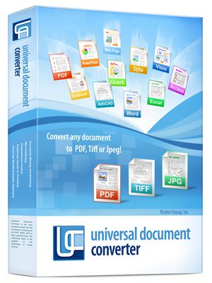 O Universal Document Converter (Conversor Universal de Documento) da empresa fCoder Group, Inc. é um programa, baseado na tecnologia virtual de impressão, que ajuda converter documentos no formato Word, Excel, Access, Power Point, Visio, Outlook, DjVu, Web page, AutoCAD, QuarkXPress e HTML para os formatos PDF, JPEG, TIFF, entre outros e documentos no formato PDF para JPEG, TIFF, entre outros.