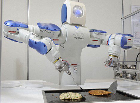 O robô Motoman SDA10 da Yaskawa Eletric que está está em exposição na International Next-Generation Robot Fair , que ocorre em Osaka (Japão), pode preparar comida com precisão manual, quando a comida está pronta, o robô ainda coloca o alimento no prato e adiciona condimentos. Projetado para operar independentemente ao lado de seres humanos no local de trabalho, o Motoman SDA10 mede 135cm, pesa 220kg, tem 15 juntas — 7 em cada braço e uma no tronco — permitindo um vasto leque de movimentos para o trabalho.  A  empresa informou que pretende vender  1.200 unidades em 2008, 2.400 unidadesem 2009 e 3.000 unidades por ano a partir de 2010.