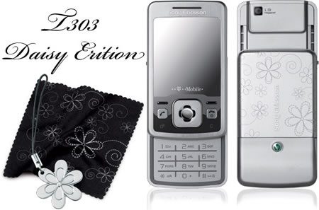 O celular Sony Ericsson T303 Daisy Edition vem com uma câmera de 1.3 megapixel, display TF de 1.8″ (128 x 160), Tri-band GSM/GPRS, rádio FM e conectividade Bluetooth. Vem com um pingente e uma sacola preta. Preço: USD$75 (na T-Movel UK).