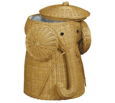 O cesto para roupas, Elephant Hamper da Home Decorator , os preços variam: USD$79 (55,88cm x 35,56cm), USD$129 (63,5cm x 43,18cm) e USD$149 (71,12cm x 50,8cm).