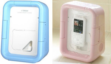 O SP-AW303 Splash Proof Portable Speaker (caixa de som a prova de água) pode ser utilizado durante o banho, o usuário pode escutar música dentro do chuveiro. A caixa de som mede 28mm e a bateria dura cerca de 6,5hora. Preço: USD$79,99