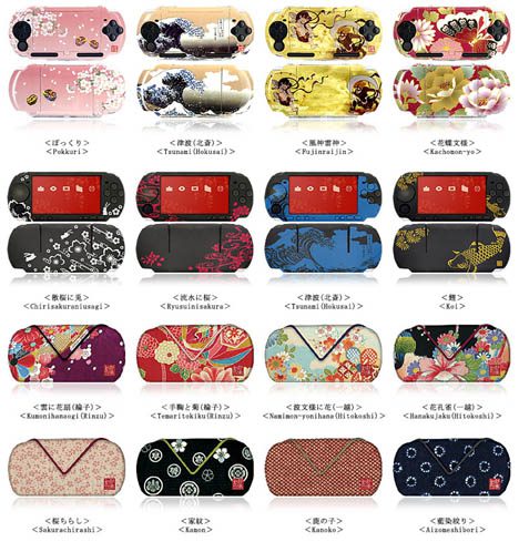 Criado pela Gametech, os cases protetores da coleção Wasabi Beautiful Colors para PSP, à venda no Japão, são inspirados no artesanato e pinturas tradicionais japonesas. Disponível em vários tipos diferentes de materiais.