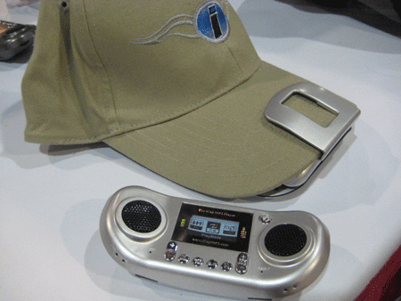 O iCap da da Gesten Technologies vem com rádio FM, gravador de voz, display, dois speakers, 1GB de memória interna e slot para cartão Micro SD. O aparelho serve para ser inserido em um boné…. vai entender? Preço: USD $119,95.