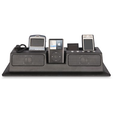 O Sound and Charge Speaker Valet with Onboard Charger integra um set de alto falantes e um dock para iPod, além de conector aux-in para conectar qualquer MP3 player. Preço: USD$59,99.