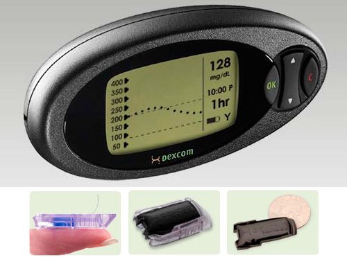 O SEVEN da DexCom usa um fio flexível de platina sob a pele para ler continuamente os níveis de glicose, o sensor, menor existente no mercado até o momento, é colocado na pele via adesivo à prova de água, dessa forma pode ser usado sem parar durante durante um período de sete dias, sem qualquer cuidado especial. O transmissor envia informações sobre nível de glicose de sangue a um receptor (do tamanho de um telefone celular com display LCD) a cada 5 minutos, fornecendo um registro mais compreensivo dos níveis de açúcar a cada hora. O display de LCD pode ser usado para mostrar gráficos com o nível de glicose de sangue pelo período de 1, 3 ou 9 horas.