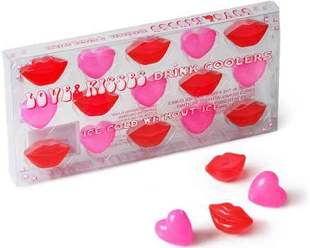 As forma de gelo Love & Kisses vem no formato de corações cor-de-rosa e lábios vermelhos ideal para suas noites românticas. USD$6,50.