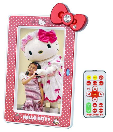 O porta-retrato digital da Hello Kitty, anunciado pela Sanrio Japão, vem com tela de 7”, 6MB de memória interna, capacidade de conectar na tomada ou tuilizando cartão de memória SD/SDHC, MMC, CF ou USB drive.