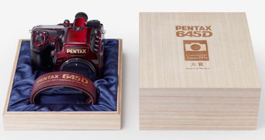 A edição limitada da câmera Pentax 645D, recentemente premiado com o “Câmera do ano ‘no Camera Grand Prix 2011 que foi realizado no Japão, por sua funcionalidade combinada a beleza.Com capacidade de resolução de 40 megapixels, lentes especiais que não permitem o acúmulo de poeira ou qualquer partícula estranha, sensor CCD que permite facilmente a detecção de diferentes intensidades de luzes, capacidade de funcionar em temperaturas até -10ºC ainda vem em uma caixa em tons de marrom com alça de couro.