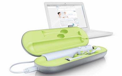 A escova de dentes USB da Philips vem em um case de viagens e pode ser conectada diretamente a um computador ou em outra placa, uma vez que carrega via porta USB. Custa cerca de £250.