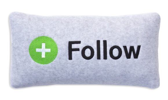 A Almofada +Follow é feita artesanalmente, é 100% de lã e ideal para os “amamantes”, disponível no FireBox para £24,99.