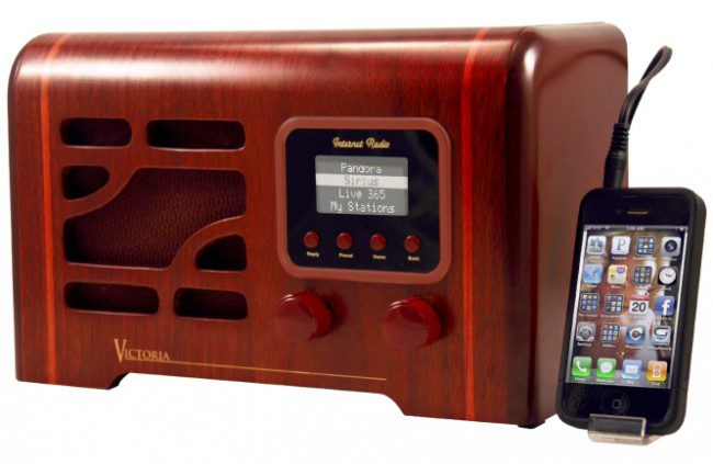 O Grace Digital Victoria Wireless Internet Radio tem um estilo clássico dos anos 40, com bordas arredondadas, feito de madeira mas com tecnologia moderna, sem fio, com capacidade de receber e reproduzir música via Wi-Fi.