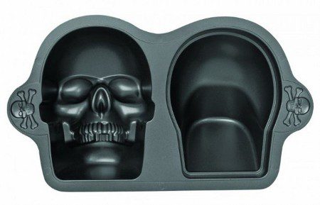 A Wilton Dimensions Nonstick 3D Skull, é uma assadeira no formato de crânio e está a venda na Amazon por USD$35.