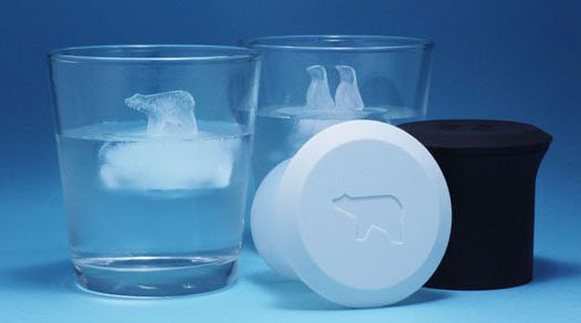 As formas de gelo Polar Ice Molds (Urso Polar) da Monos fazem urso polar e pinguim cubos de gelo em cima do iceberg flutuante. Disponível no Gizmine por USD$27,99 o par.
