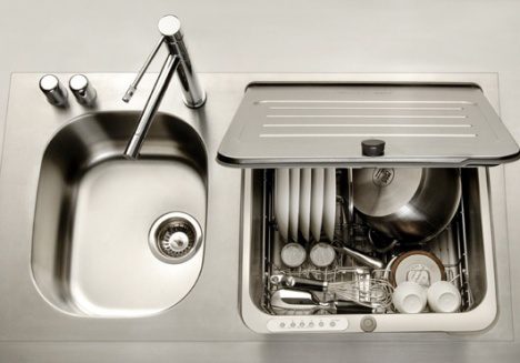 A KitchenAid® Briva® é uma ótima idéia para pequenos espaços, Pia + Máquina de lavar louça integrada, a tampa se torna um escorredor integrado com um acessório aquecedor de água de alta performance. Com capacidade de lavar louça executando um ciclo completo em menos de 18 minutos. Mesmo sem ele, as louças são lavadas em aproximadamente 30 minutos, usando a tecnologia revolucionária FlashDry®, a tampa automaticamente se abre no final do ciclo, permitindo que o vapor escape para facilitar a rápida, eficiente secagem.
