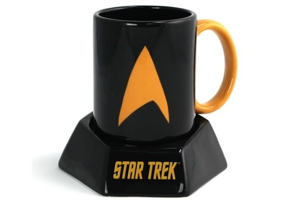 A caneca Star Trek de cerâmica vem com a Insignia da Frota Estelar e toca efeitos clássicos da Enterprise Transporter toda vez é colocada na base. Disponível no Neato Shop por USD$28.