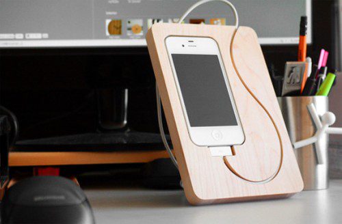 O BaseStation para o iPhone 4 é feito de madeira, tem espaço para encaixar o telefone, o conector e alguns comprimentos de cabo, além de poder ser personalizado. Disponível na Rakuten por ¥4,000.