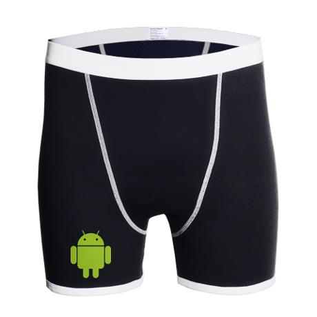 Para os rapazes, nada mais estiloso do que as boxers Android, feitas 100% de algodão, com cós elástico e acabamento, sem abertura frontal. Disponível no Cafe Press por USD$18.
