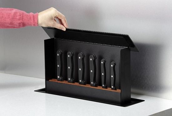 A S-Box é uma caixa de madeira criada pela empresa inglesa vencedora do FIRA Innovation Award em 2010, que armazena, por exemplo, facas de aço inoxidável na bancada da cozinha.