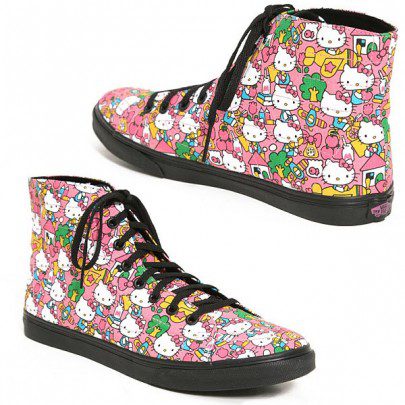 O tênis Vans Hello Kitty SK8-HI D-LO está disponível na Hot Topic por USD$54,99.