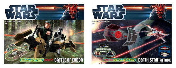 Scalextric é conhecido pelas pistas de corrida de carro, semelhante ao autorama, lançou o kit “Death Star Attack”, em escala 1:64,com comprimento de 3,8m, vem com as naves X-Wing e TIE Fighter ao invés de carrinhos, a pist abrilha no escuro, o jogo está mais para perseguição do que propriamente uma corrida. Disponível aqui por £69.99.