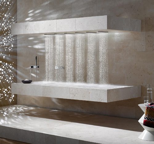 Com design elegante e moderno o chuveiro horizontal da Donbracht, é extremamente interessante e mescla o relaxamento de um banho com a terapia de jatos de ducha. Vem com seis barras de água na direção do comprimento do bloco de chuveiro e cada barra é equipada com jatos que podem ser controlados remotamente por um painel sobre o bloco.