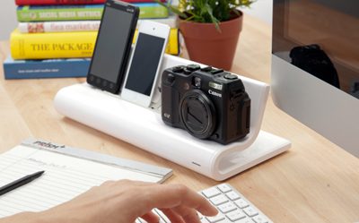 O Converge Docking Station da Quirky para carregar seus gadgets é elegante, mostra todos os gadgets enquanto são carregados, as bordas curvas possibilitam de fato que equipamentos de diferentes tamanhos, com uma porta USB, possam ser encaixados, tanto de lado como pela parte inferior. O Converge vem com 4 portas USB, está disponível no site da Quirky por USD$39,99.