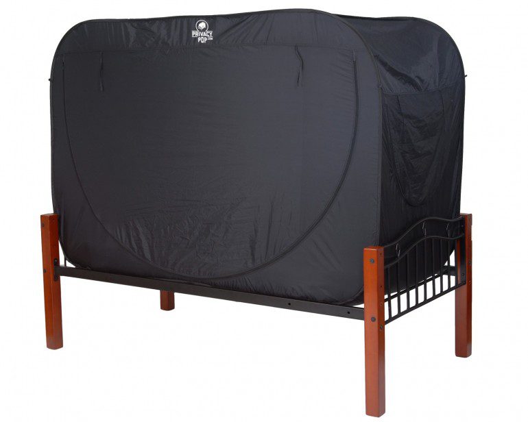 A Privacy Pop é uma pequena tenda, especificamente projetada para se encaixar sobre camas de solteiro e de viúvos. Toda feita em poliéster preto mantém a luz, criando um ambiente completamente escuro. Pode ser facilmente transportada e custa USD$200.