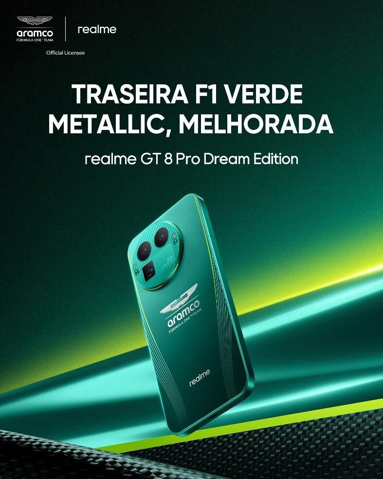 Edição especial co-criada com a Aston Martin Aramco F1® Team, o realme GT 8 Pro Dream Edition, combina design de corrida, experiência imersiva e desempenho premium